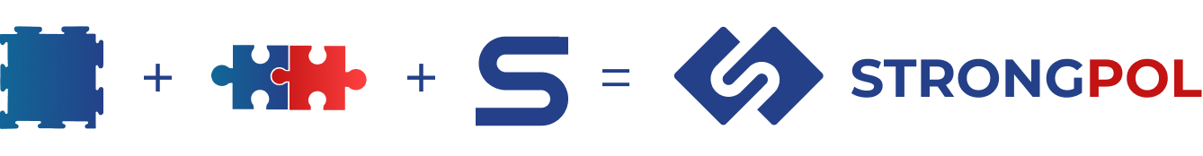Компания StrongPol занимается продажей модульных покрытий для разного типа помещений. Задача состояла в создании логотипа отражающего деятельность компании. За основу были выбраны пазлы, так как именно они передают основную идею - соединение двух модулей.